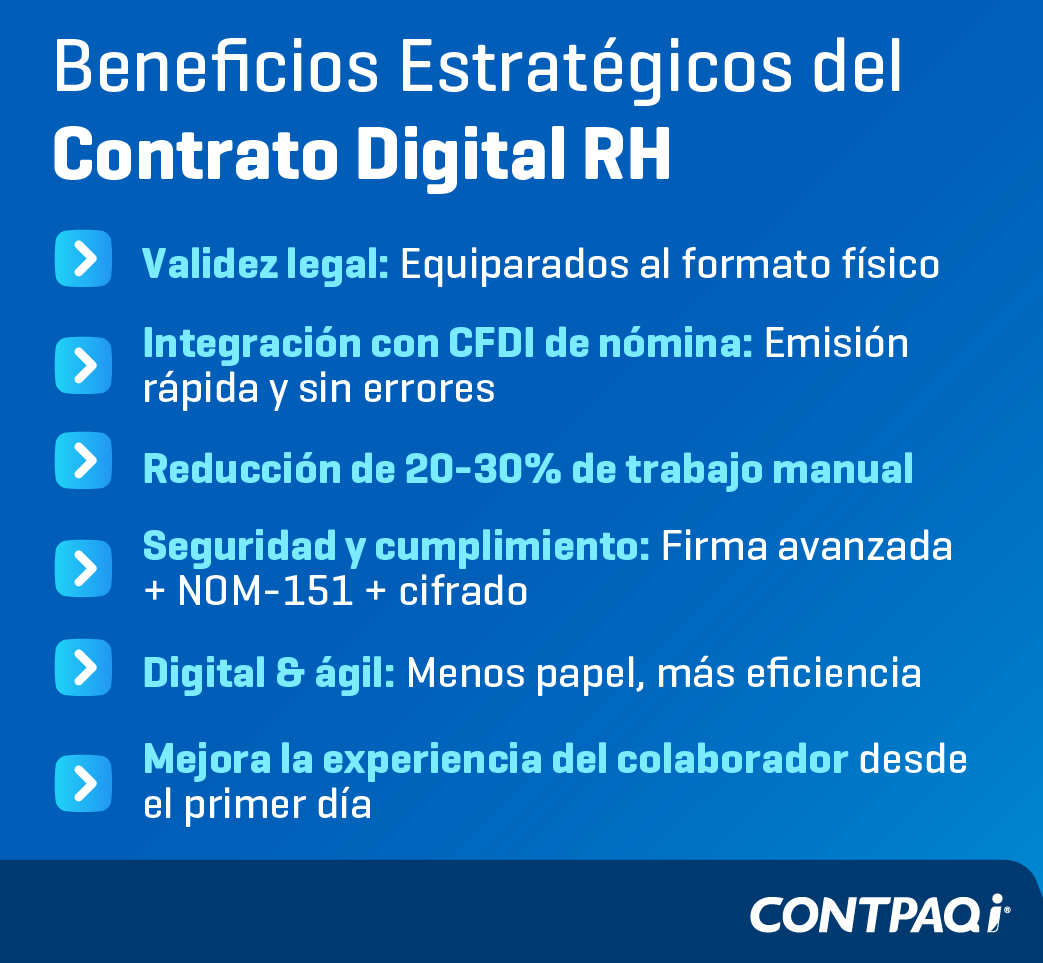 Integrar contratos digitales permite generar XML compatibles con el CFDI de nómina (versión 4.0), facilitando el timbrado y el cumplimiento fiscal.
