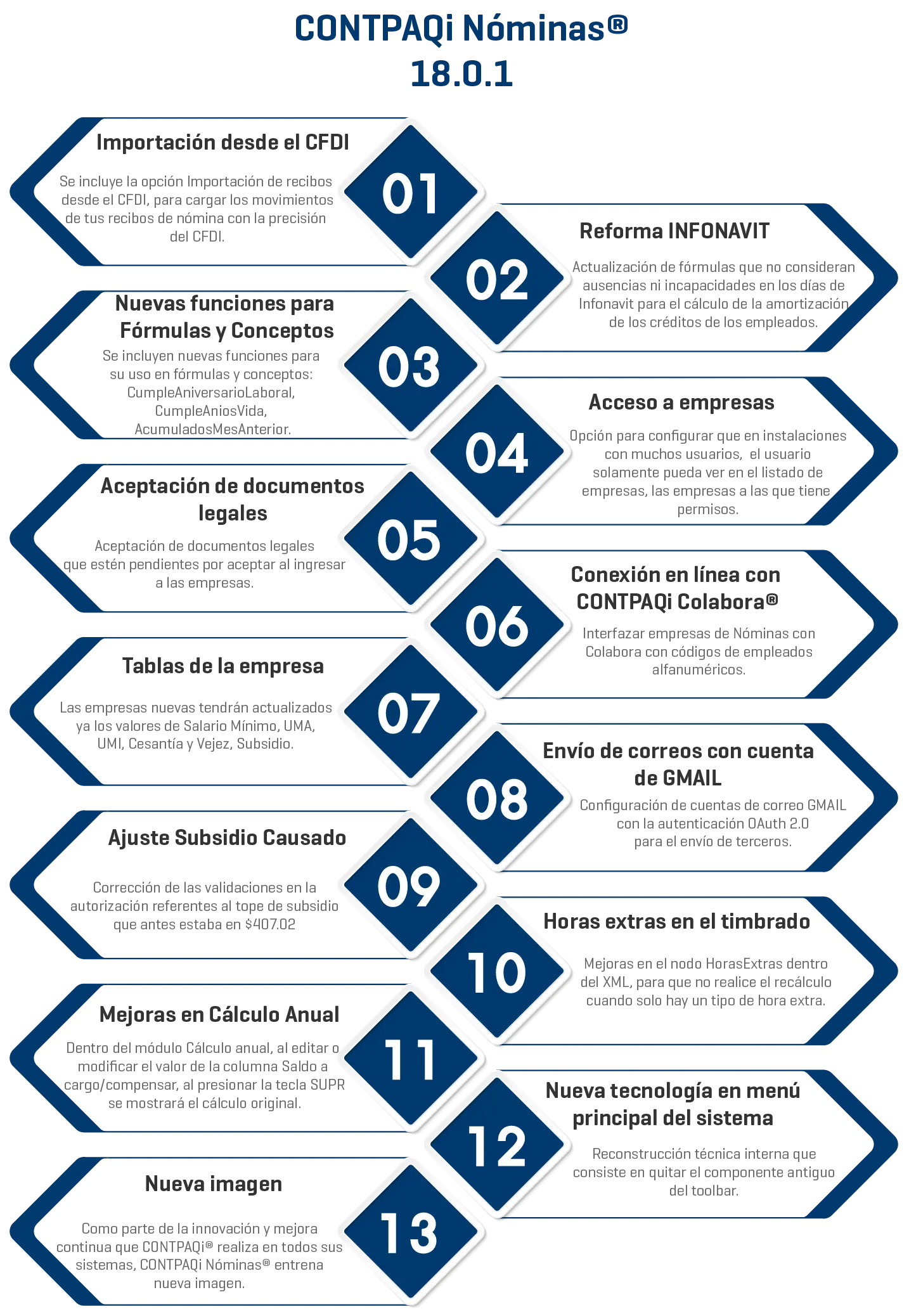 - ¡Optimiza la gestión de la nómina desde el primer día! Ahora puedes cargar tus recibos y acumulados de manera rápida y sencilla mediante el CFDI, arranca tu sistema CONTPAQi Nóminas® cargando tu información histórica, con la posibilidad de tener tus acumulados fiscales del ejercicio. A partir de esta versión, CONTPAQi Nóminas® incluye una opción para cargar los recibos de nómina a partir del CFDI, permitiéndote arrancar tu sistema de una manera fácil y sencilla.