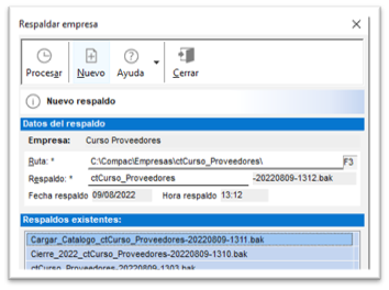 Y el archivo .BAK se encuentra en C:\Compac\Empresas\ctRutaEmpresa